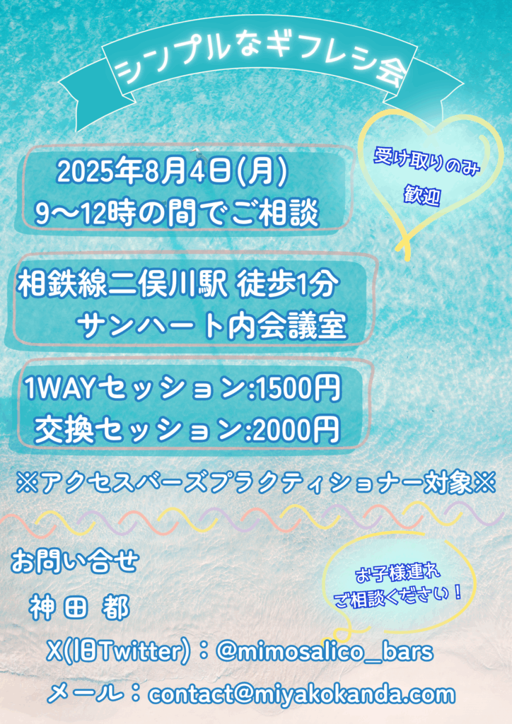 今回はアクセスバーズの資格をお持ちの方向けのギフレシ会のお知らせです。